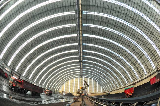 堆场料场封闭式主体结构为新型的钢沈阳网架结构,维修结构为钢结构沈阳不锈钢板和纤维增强塑料灯具,其外形以沈阳网架式和平板为主,连接柱沈阳施工自由,设置喷雾自动喷水系统,从而可以实现棚内所有物料的覆盖,减少物料在运输过程中的损耗,起到防尘的作用,减少工厂关闭后的二氧化硫排放量,50mg/m3颗粒排放量小于10mg/m3,非常适合低能耗。低闭库自动感应反应对库存轮胎进行清洁,确保轮胎不受道路污染;封闭的储存区可从源头控制粉尘污染,控制无序排放。